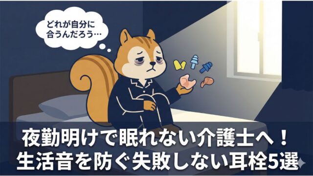出発前にカーテンを閉め、アイマスクを枕元にセットしておく——この2ステップを習慣化するだけで、帰宅後すぐ暗い部屋で横になれる状態が整います。夜勤前の準備との組み合わせについては 【介護職】夜勤の持ち物リスト|明けの疲労が変わる必須・便利グッズ も参考にしてください。