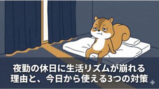 また、光対策の全体像については 夜勤明けに眠れない原因は光と音|対策の優先順位と失敗しない手順 にまとめているので、あわせて参考にしてみてください。