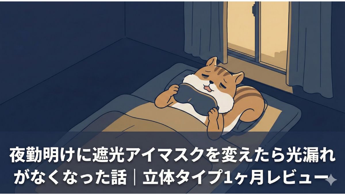 遮光アイマスクを立体構造タイプに変えた1ヶ月の結論は、「劇的ではないが、光漏れが気になっていた人には体感差がある」です。